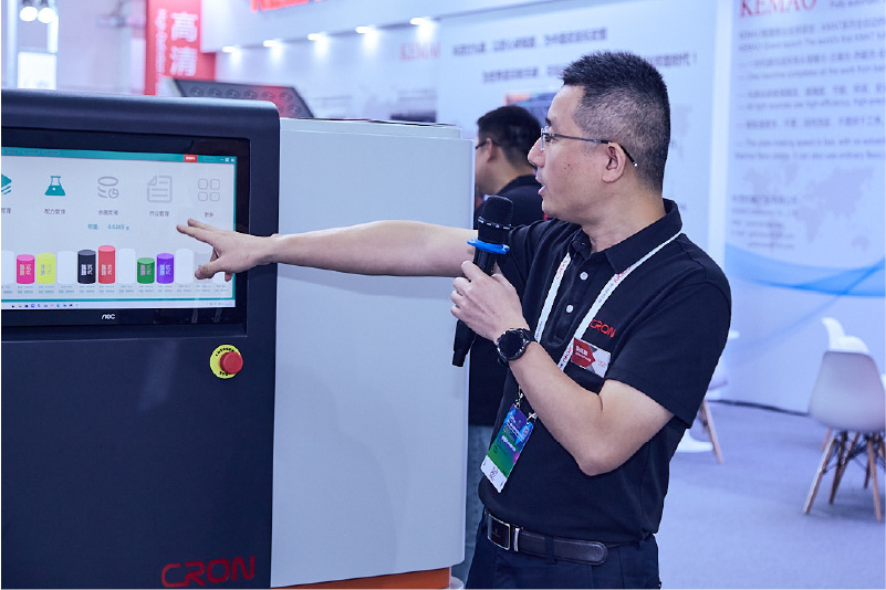 展会现场,观众只需提供实时参数--专色印刷样品或潘通色号,EZInk即可准确、快速地配制出所需专色油墨,让观众即刻感受完美色彩的魅力!