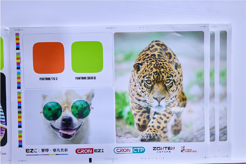 尤其超人气产品-EZC智能数字放墨系统所在的演示区参观者络绎不绝,摩肩接踵,盛况空前!现场实时印刷的样张,四色画面饱满生动,色彩过渡自然,细节还原真实,展现了出色的色彩饱和度和表现力。专色部分色彩均匀一致,远超四色油墨的表现力,令观众赞叹不已。