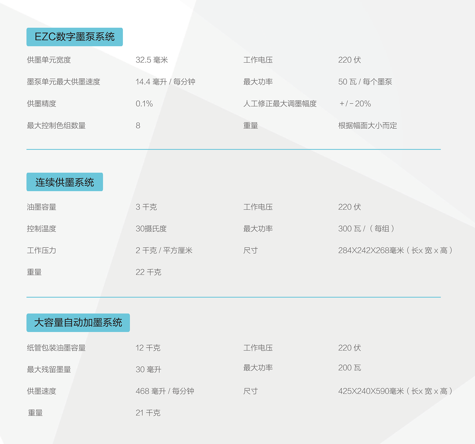 同时,油墨可通过连续供墨系统、大容量自动加墨系统和集中供墨系统3种方式进行传输,密封、恒温、自动搅拌、自动过滤,无须担心外界环境对油墨产生的干扰问题。