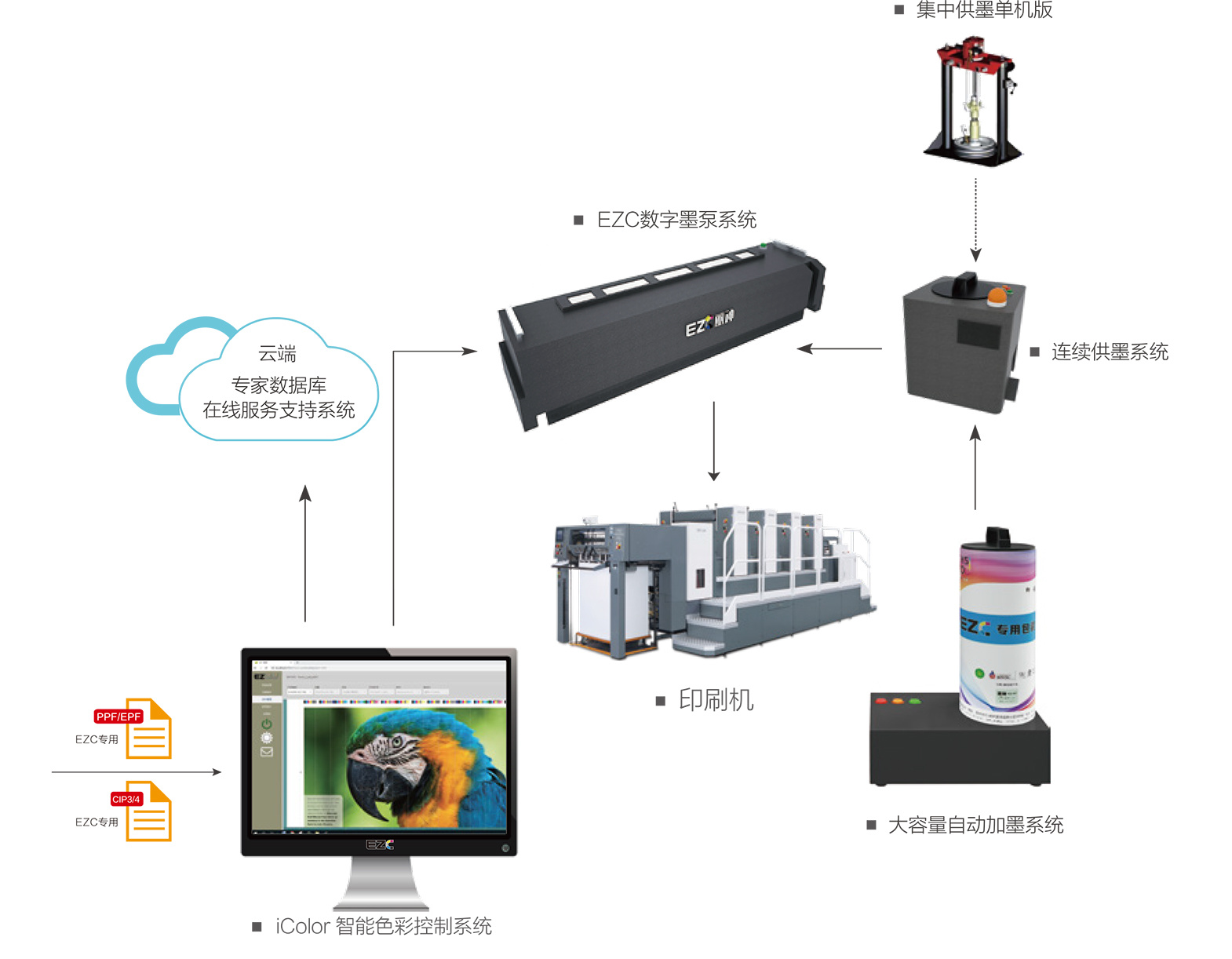 EZC 供墨有以下几种方式可供选择: